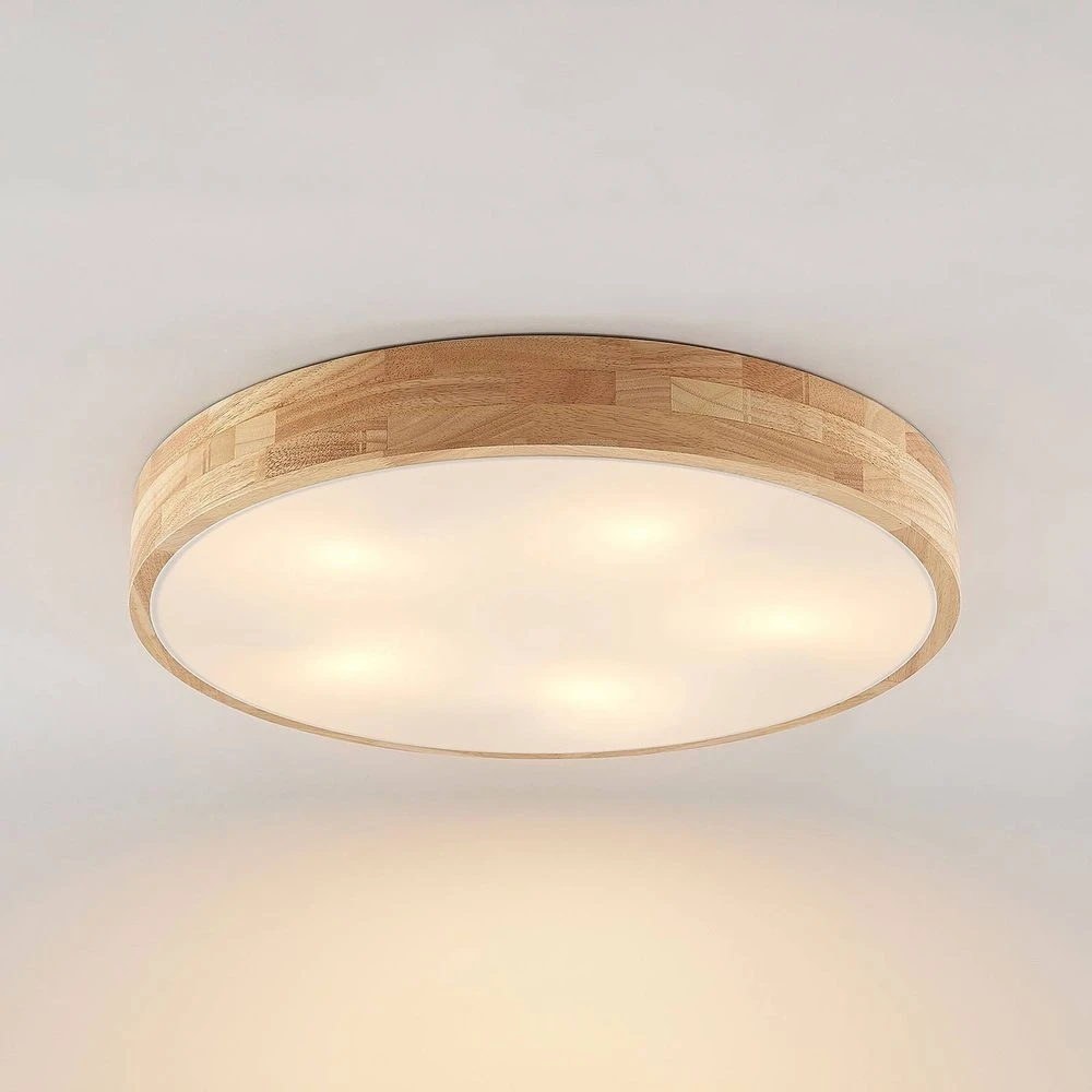 Tanju Lámpara De Techo Ø60 Wood/White – Lindby